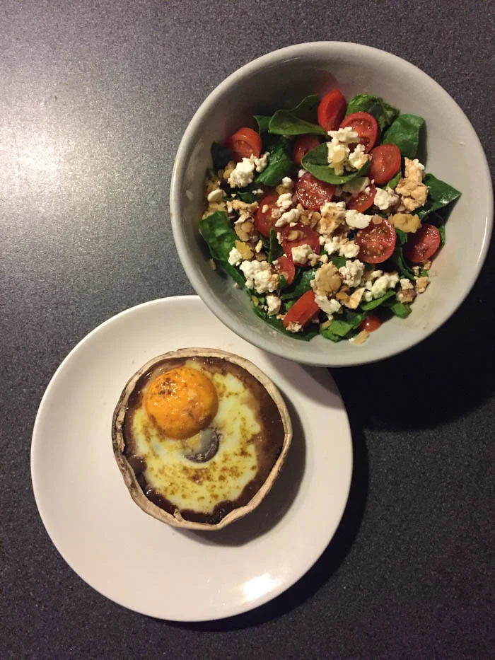 Vrijdag at ik dus alleen want Tobias moest al vroeg richting Apeldoorn om les te gaan geven. Ik heb voor hem de oven aan gezet en het laatste stuk quiche opgewarmd. Ik at wat later en heb voor mezelf een portobello gevuld met ei uit de oven klaargemaakt want ook dit wilde ik al een tijdje eens proberen. Werkt prima, de volgende keer klop ik het ei los en ga ik er nog wat aan toevoegen.