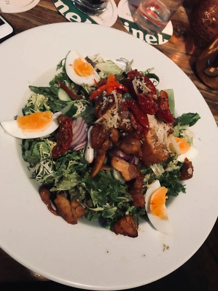 Ik had dinsdagavond een afspraak en we besloten daar gelijk maar wat lekkers van te maken. We aten in Deventer bij Samen en ik bestelde deze Ceasar Salad. Hij was hartstikke lekker hoor, maar ik blijf me erover verbazen hoe vaak de salade anders geserveerd wordt dan vooraf beloofd wordt op de kaart. Ansjovis bijvoorbeeld? Zat er niet in. En dat is voor mij toch wel een beetje inherent aan een caesar salade… Kortom, erg lekker, geen caesar salad.
