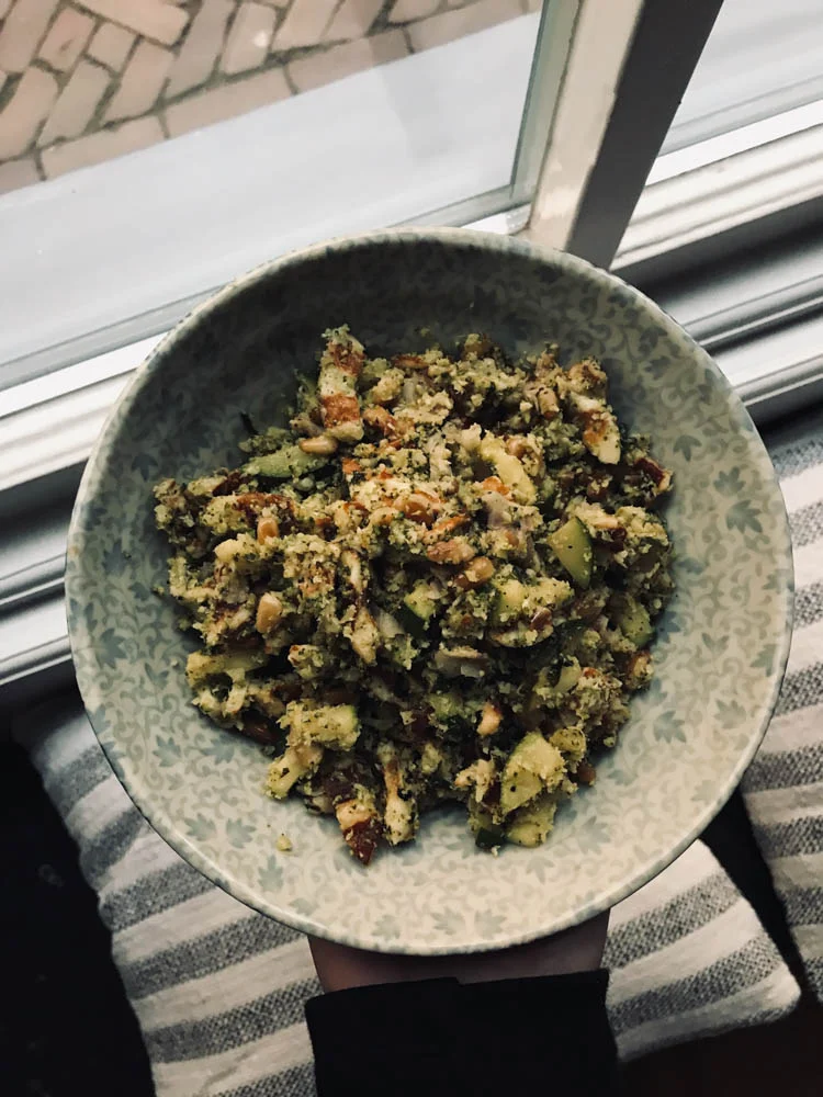 Deze kom zit vol gezonde ingrediënten en was super smaakvol. De basis is broccoli couscous met veel courgette. Wat ik er nog meer aan toevoegde lees je binnenkort op OMF.