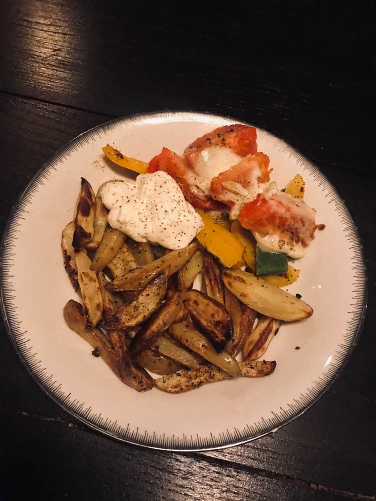 Ik kan níet echt zeggen dat ik de afgelopen week flink heb staan kokkerellen voor ons avondeten. We waren namelijk behoorlijk voorzien met nog een volle koelkast dus boodschappen deed ik ook niet echt, alleen het hoognodige werd gehaald. Want naast veel ingrediënten die we gewoon op moesten maken en waar ik dus een paar keer wat mee fabriceerde, hadden we ook nog complete gerechten over. Ik heb vorig weekend namelijk nog best veel gemaakt voor OMF en weggooien doen we natuurlijk zo min mogelijk. Los daarvan werd er ook twee keer voor me gekookt de afgelopen week. Woensdag kwam het handig uit als ik bij een vriendin zou eten, en gisteren werd er heel lekker gekookt voor ons door twee vriendinnen.