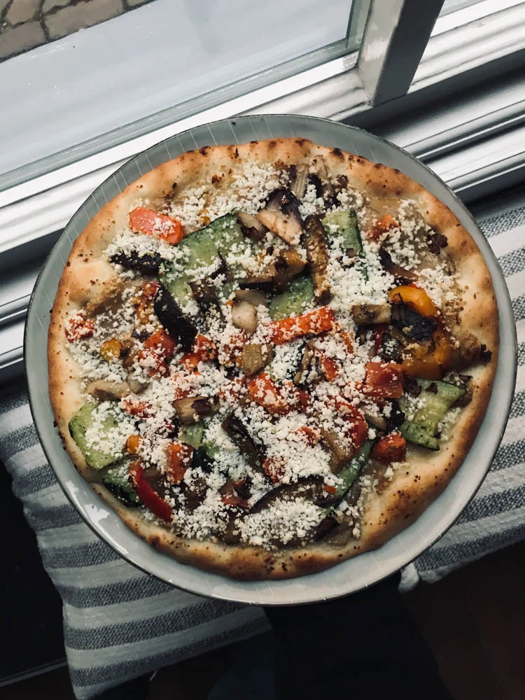Ik had vrijdag prima wat kunnen koken hoor, maar ik koos even voor de makkelijke weg. Tobias moet op vrijdag altijd om kwart over vijf in de auto zitten en ik was nog even bij de Appie dus ik besloot twee pizza’s mee te nemen zodat hij voor vertrek nog even kon eten. En ik at gelijk maar mee. Het is er eentje geworden van AH zelf (merk dat ik nog een beetje zoekende ben naar een lekkere diepvriespizza), met gegrilde groenten en ricotta bovenop. Vond de ricotta vooral een beetje korrelig haha, maar hij was best lekker!