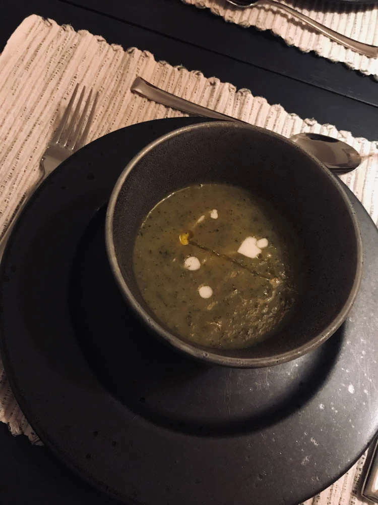 We reden gisteravond naar Nijmegen om bij te kletsen met twee vriendinnen, en om lekker met ze te eten. Ze kookten voor ons en vooraf aten we een smaakvolle, een klein beetje pittige courgettesoep. En daarna, – sorry, vergat het volledig om een foto te maken – een gerecht met bulgur en paddenstoelen. Heerlijk gegeten.