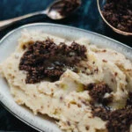 Verdeel de puree in een schaal, of meerdere schaaltjes en maak af met nog wat extra truffeltapenade en eventueel een klein beetje truffelolie. Serveer de puree direct.