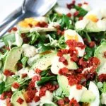 Snijd de eieren in parten en verdeel deze samen met de avocadoblokjes over de salade.