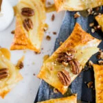 Wanneer de taartjes klaar zijn giet je er wat van de karamelsaus over en bestrooi je ze met (stukjes) pecannoten.