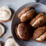 Terwijl de koekjes bakken maak je de frosting door alle ingrediënten hiervoor te mixen in een staande mixer. De frosting kun je op afgekoelde koekjes smeren en daarna serveren.