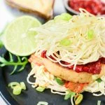 LET OP: Voordat je ze bakt maak je eerst de broodjes van noodles. Zodra die klaar zijn bak je de garnalenburgers.