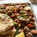 Op zoek naar een makkelijke maaltijd? Dan zit je met deze falafel traybake met flatbread helemaal goed. Veel groenten, heerlijk brood en met knoflooksaus erbij heb je verder niets meer nodig.