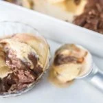 Schenk het mengsel in de ijsmachine en draai er volgens de gebruiksaanwijzing van de ijsmachine een smeuïg roomijs van. Schep het ijs in een bak en laat in de vriezer verder opstijven.