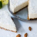 Stort nu de vulling op de bodem en verdeel nog wat kokosrasp over het taartje. Laat het geheel in de koelkast opstijven. Een nacht is het beste.