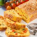 Giet de mix in een met bakpapier beklede bakvorm (cakevorm) en strooi er als laatste de geraspte kaas over.
