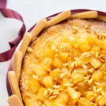 Wanneer de cheesecake klaar is en volledig afgekoeld (inclusief opstijven in de koelkast), karamelliseer je de stukjes ananas. Lek ze goed uit en bak ze in een droge koekenpan. Voeg na 5 minuten de klont boter en de rietsuiker toe en bak totdat ze beginnen te karamelliseren.