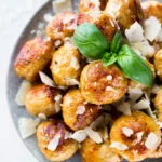 Serveer op een schaal met nog wat extra Parmigiano over de balletjes geraspt.