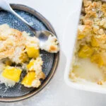 Meng de mango erdoor en stort alles in een kleine ovenschaal.