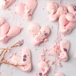 Voeg op het laatst de roze kleurstof toe zodat de machine deze nog even door het beslag kan swirlen. Als je egaal roze hartjes wilt maken moet je ervoor zorgen dat alle kleurstof door de meringue is opgenomen.