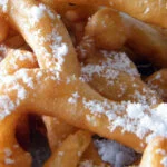 Verhit de frituurpan tot ongeveer 180-185°C en spuit het deeg in kleine strookjes direct in het vet. Het is even een beetje puzzelen met de hoeveelheid, maar stroken van 5-10 cm zijn te doen. Doe niet teveel in de pan, het deeg zet namelijk flink uit in het vet!