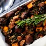 Als alles gaar is voeg je het samen in een ovenschaal.