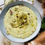 Het is heel makkelijk; rooster de pistachenootjes even in een droge koekenpan en doe ze vervolgens samen met alle andere ingrediƫnten in een foodprocessor. Maal tot een mooie dipsaus. Voeg citroenrasp en peper toe naar smaak. En de Griekse yoghurt zit erin om de dip iets vloeibaarder te maken, speel hier dus mee als het nodig is.