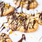 Tijdens het bakken smelt je de pure chocolade au bain marie. De gesmolten chocolade doe je in een plastic zakje/puntzak waar je een klein puntje vanaf knipt. Let op want de chocolade loopt er makkelijk uit. Zorg dus dat je alle koeken klaar hebt liggen (afgekoeld) op een stuk bakpapier en beweeg met de puntzak over alle koeken heen zodat overal een lekkere laag chocolade op zit.