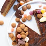 Decoreer de cheesecake met het strooigoed vlak voor het serveren.